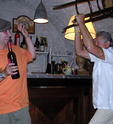 You can't taste cheese without wine, of course. Babbett had decorated the tables with glass beans and frilly table clothes. Later, we hung out by the pool. Mary and I napped in a hammock while Patrick and Micheal swam in the chilly water. |