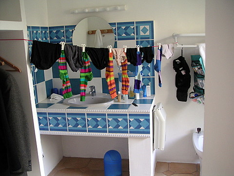 Our room was a palace - well, a palace with clothes drying in the bathroom. We like to pack light so on our penultimate day we did a little laundry. Our room really was huge: Besides the bathroom, there was a bedroom and even a little kitchen. We've stayed in other places where the whole thing was smaller than this bathroom. |