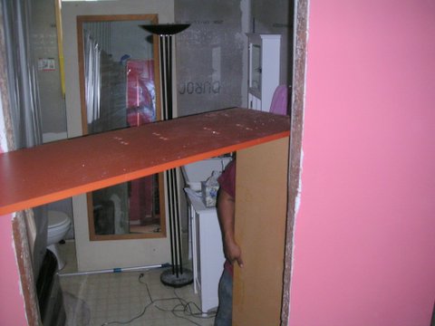 The cabinet surrounding the Murphy bed proved to be a bit more than the hall would accommodate.