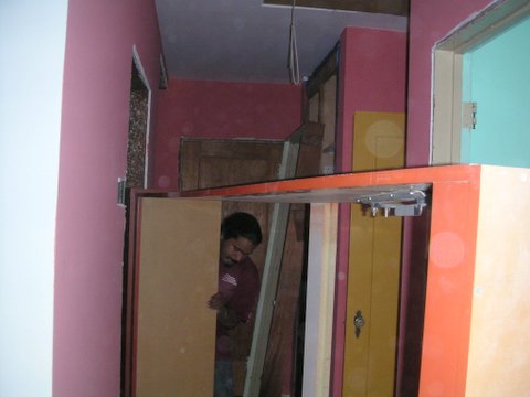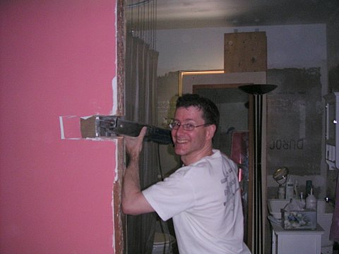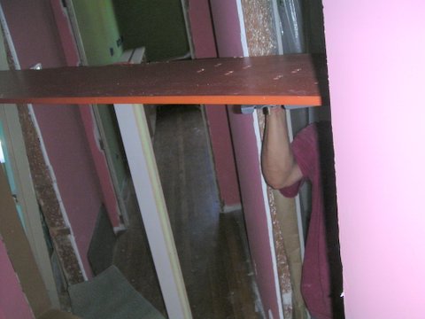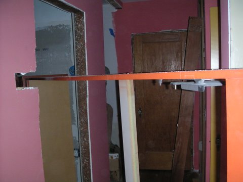 By the way, this means that nothing is holding up one end of the header over the door... Not a problem: the insurance is paid up, I'm pretty sure.