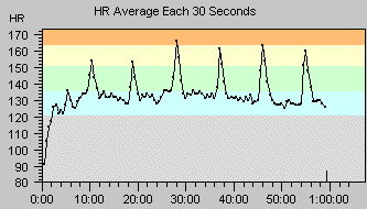 There are several variables to interval training. I've chosen a short peak time so that I can fully recover between each peak and still get quite a few peaks into a single session. Next year, I may increase to 90 second peak time, but this year, it seemed best to start "easy". Even so, these are "hard day" workouts and I try to put "easy days" both before and after them.
