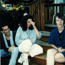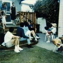 Madeline (small child in the upper left) makes an appearance. Peter, Mike, Amy, Mary and Lee (left to right along bottom) look on. Sharon and Cynthia (proud mom) are on the deck. Unidentified knees to the right. Click here to download this photo of Madeline (10k JPG file called sharon.jpg).