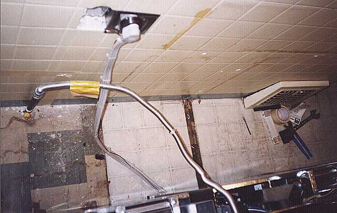 Here we see the gas and electric connections for the new stove. It's a ``dual fuel" unit: The cooktop is natural gas (for fast and precise heat) and the oven is electric (they tell me this is good... I don't kow why). |
