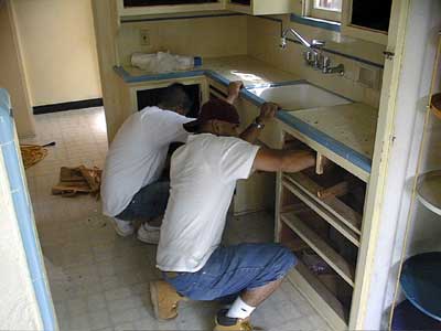 These two guys are turning our 80 year old cabinets into toothpicks. They like to work to music...